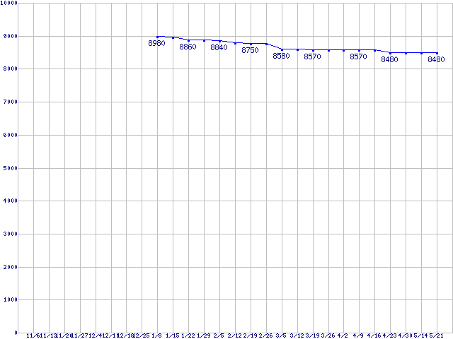 | ※製品名をクリックすると個別のグラフを表示します ※点線部は販売店が確認できなかった、または調査データがないことを示します |