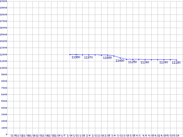 | X25-V Value SATA SSD (SSD,3Gb/s,2.5インチ,リード170MB/s・ライト35MB/s)の最安値推移 |
