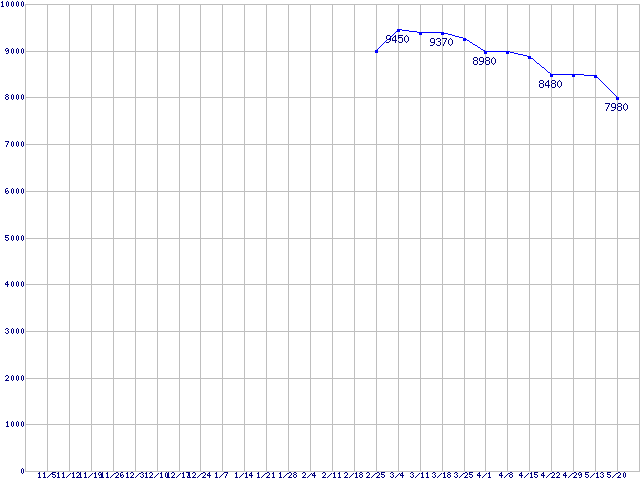 | Spinpoint M (5400rpm,3Gb/s,2.5インチ)の最安値推移 |