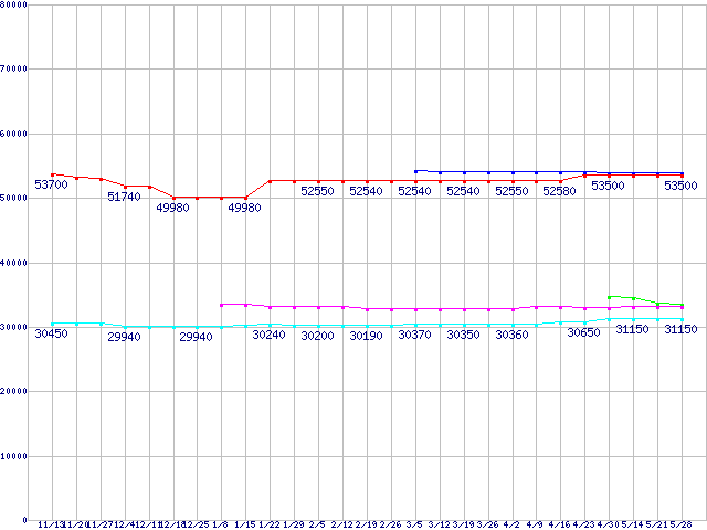 | CPU主要製品(最安値3万円〜6万円未満)の最安値推移 |