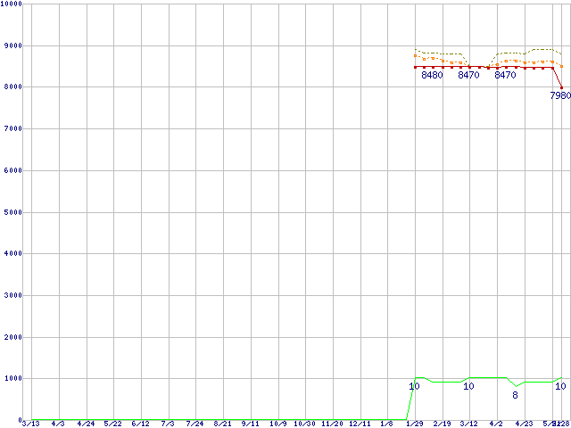 Athlon II X3 440 (3.0GHz,L2 512KB×3,TDP 95W)の価格推移↑前グラフ↓次グラフ(2009年3月13日〜2010年5月28日)※このグラフは過去のデータも税率5%相当に調整した税込み相当額のグラフです。●関連グラフCPU主要製品の最安値推移CPU主要製品(最安値1万円未満)の最安値推移AMD系CPUの最安値推移Socket AM3 (Triple Core)の最安値推移●凡例最安値(点線部は販売店未確認または未調査)平均値最高値ショップ数