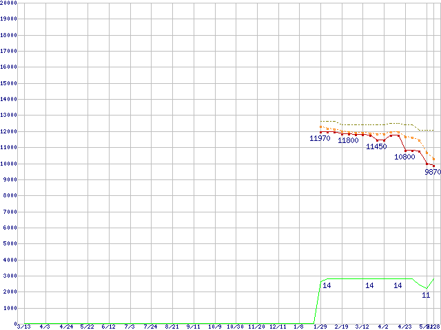 Athlon II X4 635 (2.9GHz,L2 512KB×4,TDP 95W)の価格推移↑前グラフ↓次グラフ(2009年3月13日〜2010年5月28日)※このグラフは過去のデータも税率5%相当に調整した税込み相当額のグラフです。●関連グラフCPU主要製品の最安値推移CPU主要製品(最安値1万円未満)の最安値推移AMD系CPUの最安値推移Socket AM3 (Quad Core)の最安値推移●凡例最安値(点線部は販売店未確認または未調査)平均値最高値ショップ数