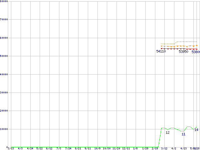 Core i7-960 (3.20GHz)の価格推移↑前グラフ↓次グラフ(2009年3月13日〜2010年5月28日)※このグラフは過去のデータも税率5%相当に調整した税込み相当額のグラフです。●関連グラフCPU主要製品の最安値推移CPU主要製品(最安値3万円〜6万円未満)の最安値推移Intel系CPUの最安値推移LGA1366 (QPI 4.8GT/s,L3キャッシュ8MB,Quad Core,Hyper-Threading,TDP 130W)の最安値推移●凡例最安値(点線部は販売店未確認または未調査)平均値最高値ショップ数