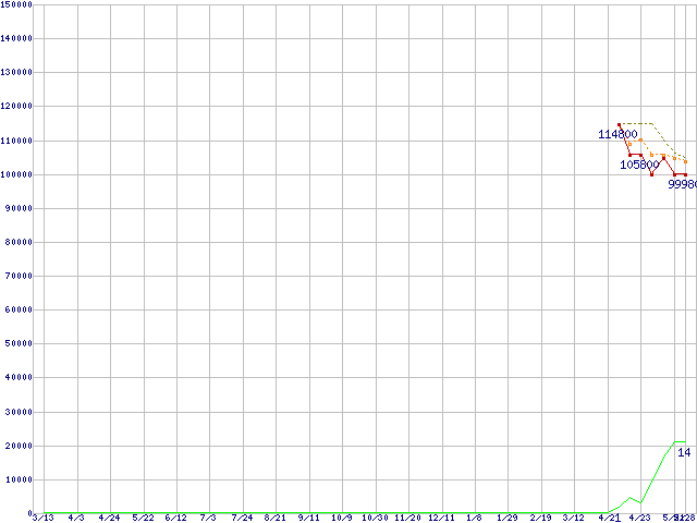 Core i7-980X Extreme Edition (3.33GHz)の価格推移↑前グラフ↓次グラフ(2009年3月13日〜2010年5月28日)※このグラフは過去のデータも税率5%相当に調整した税込み相当額のグラフです。●関連グラフCPU主要製品の最安値推移CPU主要製品(最安値6万円以上)の最安値推移Intel系CPUの最安値推移LGA1366 (QPI 6.4GT/s,L3キャッシュ12MB,6Core,Hyper-Threading,TDP 130W)の最安値推移●凡例最安値(点線部は販売店未確認または未調査)平均値最高値ショップ数
