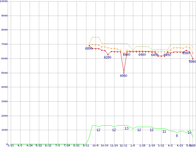 Athlon II X2 235e (2.7GHz,L2 1MB×2,TDP 45W)の価格推移↑前グラフ↓次グラフ(2009年3月13日〜2010年5月28日)※このグラフは過去のデータも税率5%相当に調整した税込み相当額のグラフです。●関連グラフCPU主要製品の最安値推移CPU主要製品(最安値1万円未満)の最安値推移AMD系CPUの最安値推移Socket AM3 (Dual Core)の最安値推移●凡例最安値(点線部は販売店未確認または未調査)平均値最高値ショップ数