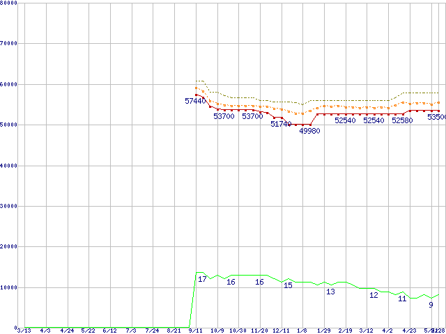 Core i7-870 (2.93GHz)の価格推移↑前グラフ↓次グラフ(2009年3月13日〜2010年5月28日)※このグラフは過去のデータも税率5%相当に調整した税込み相当額のグラフです。●関連グラフCPU主要製品の最安値推移CPU主要製品(最安値3万円〜6万円未満)の最安値推移Intel系CPUの最安値推移LGA1156 (L3キャッシュ8MB,Quad Core,Hyper-Threading,TDP 82〜95W)の最安値推移●凡例最安値(点線部は販売店未確認または未調査)平均値最高値ショップ数