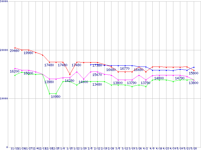 | Socket AM3 (HyperTransport 3.0,Quad Core)の最安値推移 |