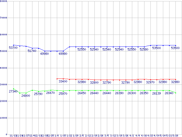 | LGA1156 (L3キャッシュ8MB,Quad Core,Hyper-Threading,TDP 82〜95W)の最安値推移 |
