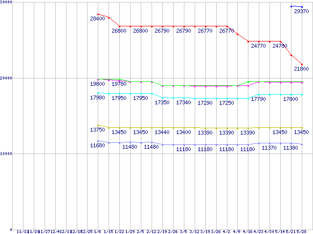 | ※製品名をクリックすると個別のグラフを表示します ※点線部は販売店が確認できなかった、または調査データがないことを示します | |