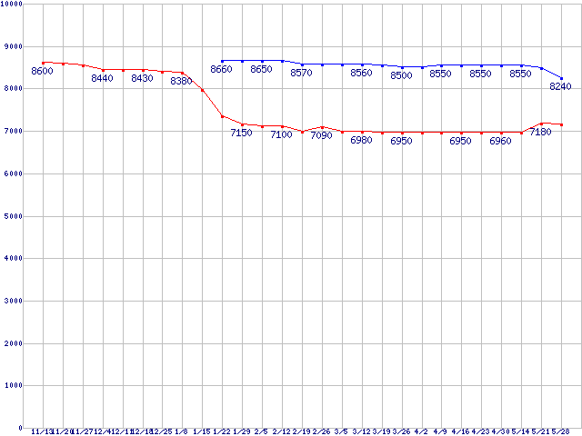 LGA775 (FSB 1066MHz,Dual Core,TDP 65W)の最安値推移