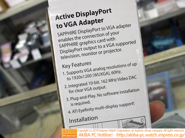 AKIBA PC Hotline! 2010年5月29日号今週見つけた新製品:ディスプレイ関連 SAPPHIRE CABLE,ACTIVE DISPLAYPORT(M) TO VGA(F,SLIM) - 178MM前の画像←→次の画像
