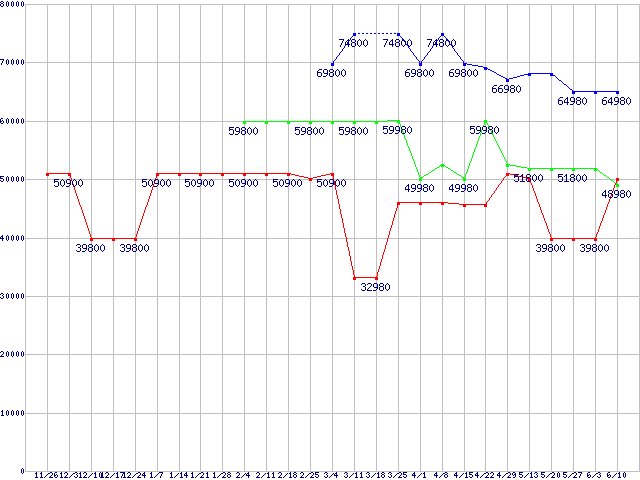 | ※製品名をクリックすると個別のグラフを表示します ※点線部は販売店が確認できなかった、または調査データがないことを示します | |