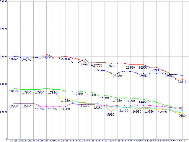 | ※製品名をクリックすると個別のグラフを表示します ※点線部は販売店が確認できなかった、または調査データがないことを示します | |