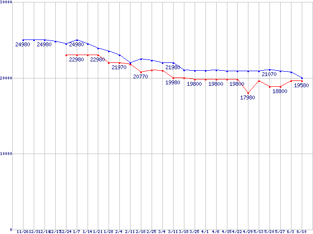| HDD 80GB〜100GB未満の最安値推移 |