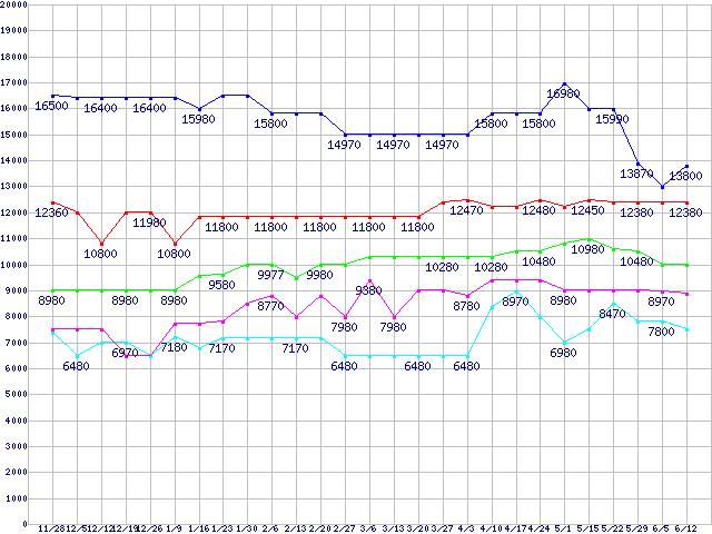 | ※製品名をクリックすると個別のグラフを表示します ※点線部は販売店が確認できなかった、または調査データがないことを示します | |