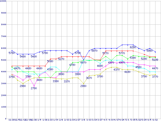 | ※製品名をクリックすると個別のグラフを表示します ※点線部は販売店が確認できなかった、または調査データがないことを示します | |