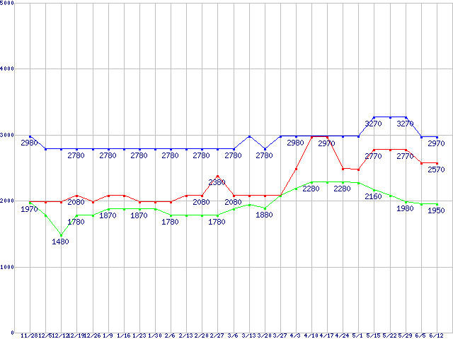| ※製品名をクリックすると個別のグラフを表示します ※点線部は販売店が確認できなかった、または調査データがないことを示します | |