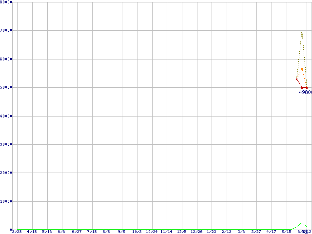 PC3-12800 4GB×3枚組みセットの価格推移↑前グラフ↓次グラフ(2009年3月28日〜2010年6月12日)※このグラフは過去のデータも税率5%相当に調整した税込み相当額のグラフです。 税率変更や、総額表示方式導入(2004年4月)の影響は除いています。●関連グラフメモリ主要製品の最安値推移メモリ主要製品(最安値1万円以上)の最安値推移PC3-12800(DDR3-1600) DDR3 SDRAM DIMMの最安値推移●凡例最安値(点線部は販売店未確認または未調査)平均値最高値ショップ数