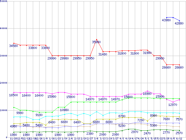 | ※製品名をクリックすると個別のグラフを表示します ※点線部は販売店が確認できなかった、または調査データがないことを示します | |