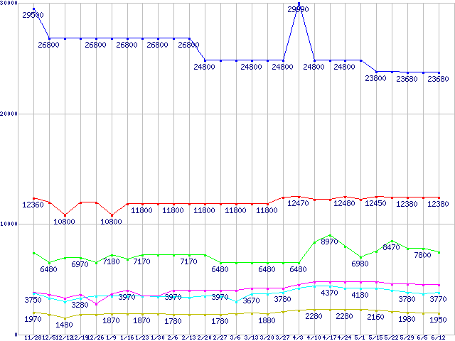 | ※製品名をクリックすると個別のグラフを表示します ※点線部は販売店が確認できなかった、または調査データがないことを示します | |