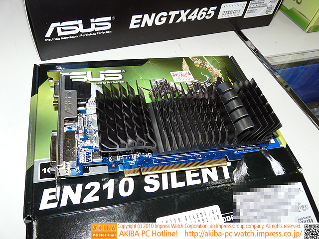 AKIBA PC Hotline! 2010年6月12日号今週見つけた新製品:ビデオカード ASUS EN210 SILENT/DI/1GD2(LP) ASUS EN210 SILENT/DI/512MD2(LP)[記事に戻る]→次の画像