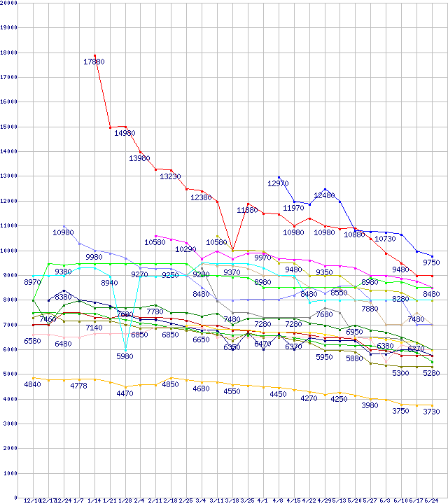 | HDD/SSD主要製品(最安値1万円未満)の最安値推移 |
