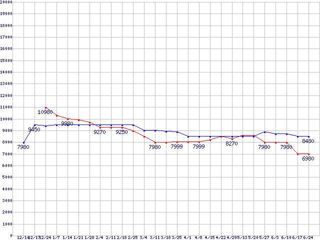 | ※製品名をクリックすると個別のグラフを表示します ※点線部は販売店が確認できなかった、または調査データがないことを示します |