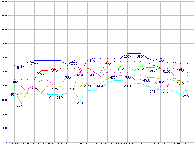 | ※製品名をクリックすると個別のグラフを表示します ※点線部は販売店が確認できなかった、または調査データがないことを示します | |