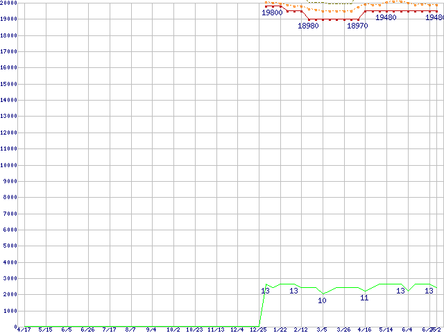 Core i5-661 (3.33GHz)の価格推移↑前グラフ↓次グラフ(2009年4月17日〜2010年7月2日)※このグラフは過去のデータも税率5%相当に調整した税込み相当額のグラフです。●関連グラフCPU主要製品の最安値推移CPU主要製品(最安値1万円〜2万円未満)の最安値推移Intel系CPUの最安値推移LGA1156 (L3キャッシュ4MB,Dual Core,GPU内蔵,Hyper-Threading,TDP 73〜87W)の最安値推移●凡例最安値(点線部は販売店未確認または未調査)平均値最高値ショップ数
