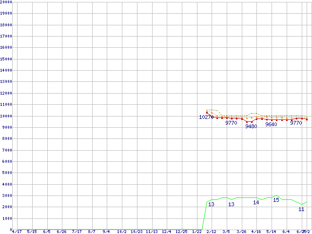 Phenom II X2 555 Black Edition (3.2GHz,L2 512KB×2,L3 6MB)の価格推移↑前グラフ↓次グラフ(2009年4月17日〜2010年7月2日)※このグラフは過去のデータも税率5%相当に調整した税込み相当額のグラフです。●関連グラフCPU主要製品の最安値推移CPU主要製品(最安値1万円未満)の最安値推移AMD系CPUの最安値推移Socket AM3 (HyperTransport 3.0,Dual Core,L3 6MB,TDP 80W)の最安値推移●凡例最安値(点線部は販売店未確認または未調査)平均値最高値ショップ数