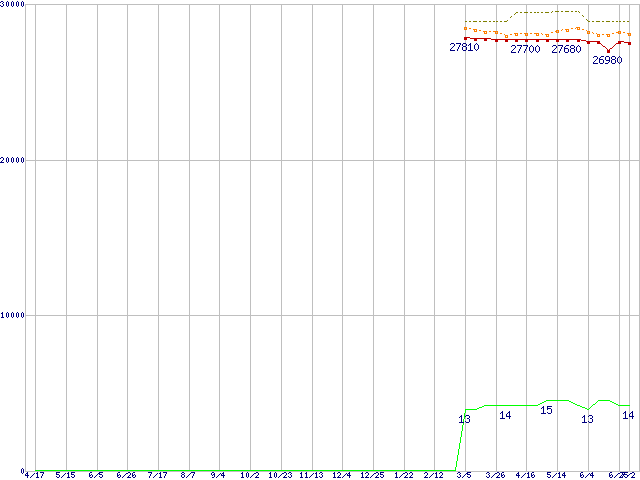 Core i7-930 (2.80GHz)の価格推移↑前グラフ↓次グラフ(2009年4月17日〜2010年7月2日)※このグラフは過去のデータも税率5%相当に調整した税込み相当額のグラフです。●関連グラフCPU主要製品の最安値推移CPU主要製品(最安値2万円〜3万円未満)の最安値推移Intel系CPUの最安値推移LGA1366 (QPI 4.8GT/s,L3キャッシュ8MB,Quad Core,Hyper-Threading,TDP 130W)の最安値推移●凡例最安値(点線部は販売店未確認または未調査)平均値最高値ショップ数
