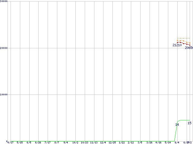 Core i5-655K (3.2GHz)の価格推移↑前グラフ↓次グラフ(2009年4月17日〜2010年7月2日)※このグラフは過去のデータも税率5%相当に調整した税込み相当額のグラフです。●関連グラフCPU主要製品の最安値推移CPU主要製品(最安値2万円〜3万円未満)の最安値推移Intel系CPUの最安値推移LGA1156 (L3キャッシュ4MB,Dual Core,GPU内蔵,Hyper-Threading,TDP 73〜87W)の最安値推移●凡例最安値(点線部は販売店未確認または未調査)平均値最高値ショップ数