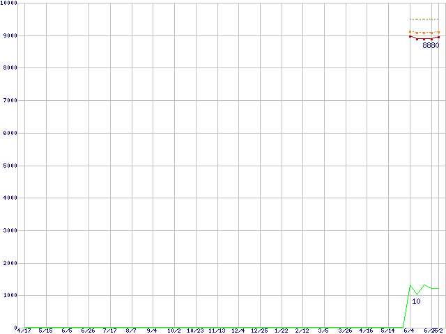 Pentium E6700 (3.20GHz,L2 2MB)の価格推移↑前グラフ↓次グラフ(2009年4月17日〜2010年7月2日)※このグラフは過去のデータも税率5%相当に調整した税込み相当額のグラフです。●関連グラフCPU主要製品の最安値推移CPU主要製品(最安値1万円未満)の最安値推移Intel系CPUの最安値推移LGA775 (FSB 1066MHz,Dual Core,TDP 65W)の最安値推移●凡例最安値(点線部は販売店未確認または未調査)平均値最高値ショップ数