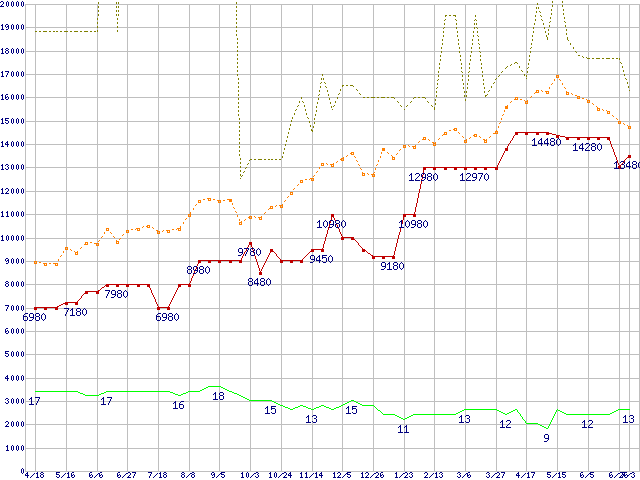 PC3-10600 2GB×3枚組みセットの価格推移↑前グラフ↓次グラフ(2009年4月18日〜2010年7月3日)※このグラフは過去のデータも税率5%相当に調整した税込み相当額のグラフです。 税率変更や、総額表示方式導入(2004年4月)の影響は除いています。●関連グラフメモリ主要製品の最安値推移メモリ主要製品(最安値1万円以上)の最安値推移PC3-10600(DDR3-1333) DDR3 SDRAM DIMMの最安値推移●凡例最安値(点線部は販売店未確認または未調査)平均値最高値ショップ数