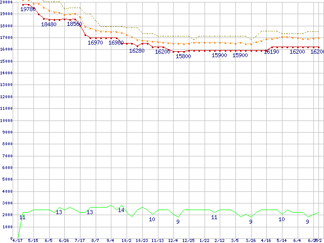 Core 2 Quad Q8400 (2.66GHz,L2 2MB×2)の価格推移↑前グラフ↓次グラフ(2009年4月17日〜2010年7月2日)※このグラフは過去のデータも税率5%相当に調整した税込み相当額のグラフです。●関連グラフCPU主要製品の最安値推移CPU主要製品(最安値1万円〜2万円未満)の最安値推移Intel系CPUの最安値推移LGA775 (FSB 1333MHz,Quad Core,TDP 95W)の最安値推移●凡例最安値(点線部は販売店未確認または未調査)平均値最高値ショップ数