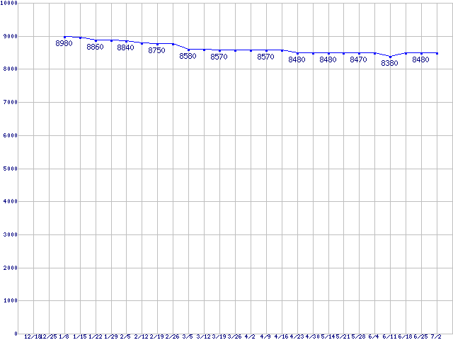 | LGA1156 (L3キャッシュ3MB,Dual Core,GPU内蔵,TDP 73W)の最安値推移 |