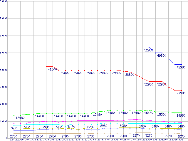 | ※製品名をクリックすると個別のグラフを表示します ※点線部は販売店が確認できなかった、または調査データがないことを示します | |