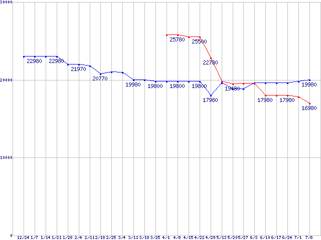 | HDD/SSD主要製品(最安値1万5千円〜2万円未満)の最安値推移 |