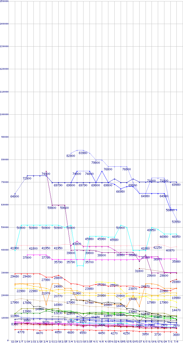 HDD/SSD主要製品の最安値推移