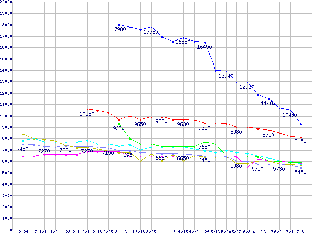 | ※製品名をクリックすると個別のグラフを表示します ※点線部は販売店が確認できなかった、または調査データがないことを示します | |