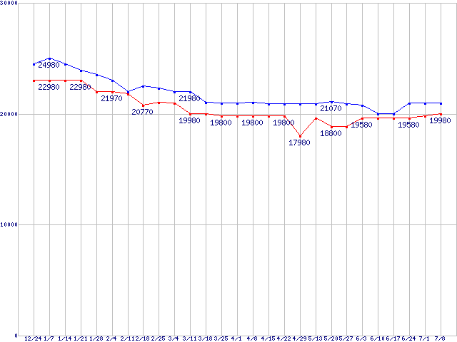 | HDD 80GB〜100GB未満の最安値推移 |
