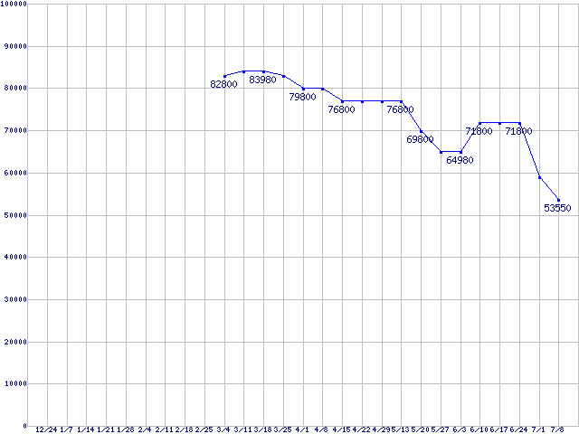| HDD 200〜250GB未満の最安値推移 |