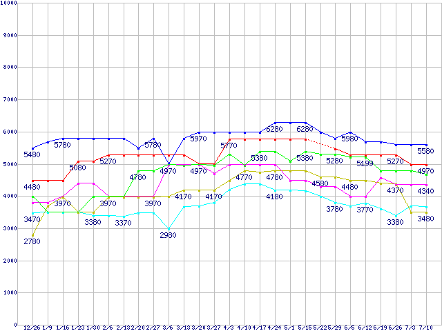 | ※製品名をクリックすると個別のグラフを表示します ※点線部は販売店が確認できなかった、または調査データがないことを示します | |