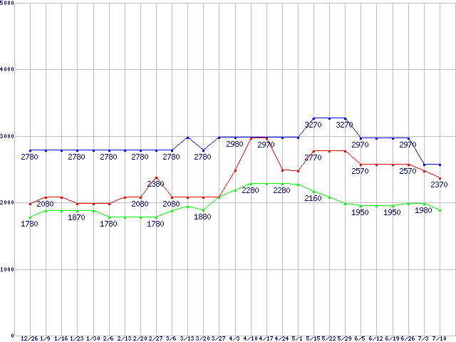 | ※製品名をクリックすると個別のグラフを表示します ※点線部は販売店が確認できなかった、または調査データがないことを示します | |