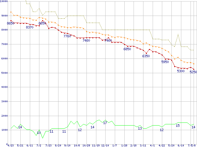 | HTS545050B9A300 (500GB,8MB)の価格推移 |