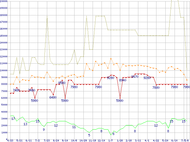 | その他2.5インチSSD 32GB (32GB,MLC)の価格推移 |