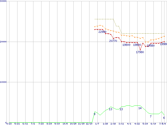| X25-M(G2)OEM品SSD (80GB,MLC)の価格推移 |