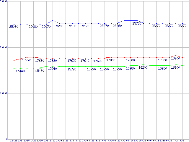 | LGA775 (FSB 1333MHz,Dual Core,TDP 65W)の最安値推移 |