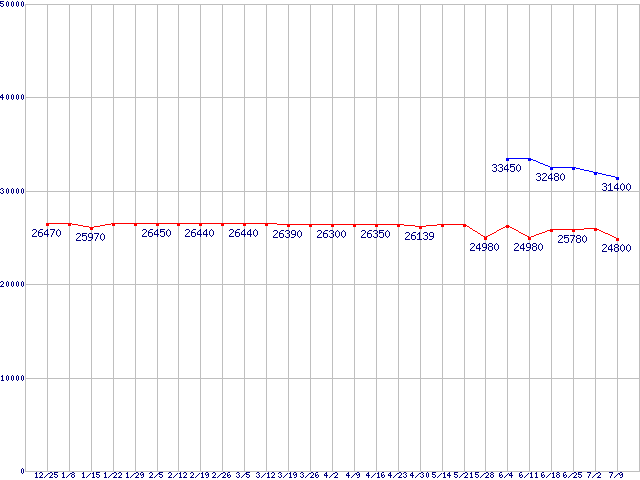 | LGA1156 (L3キャッシュ8MB,Quad Core,Hyper-Threading,TDP 82〜95W)の最安値推移 |