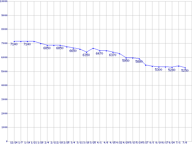 | Travelstar 5K500.B (5400rpm,3Gb/s,2.5インチ)の最安値推移 |